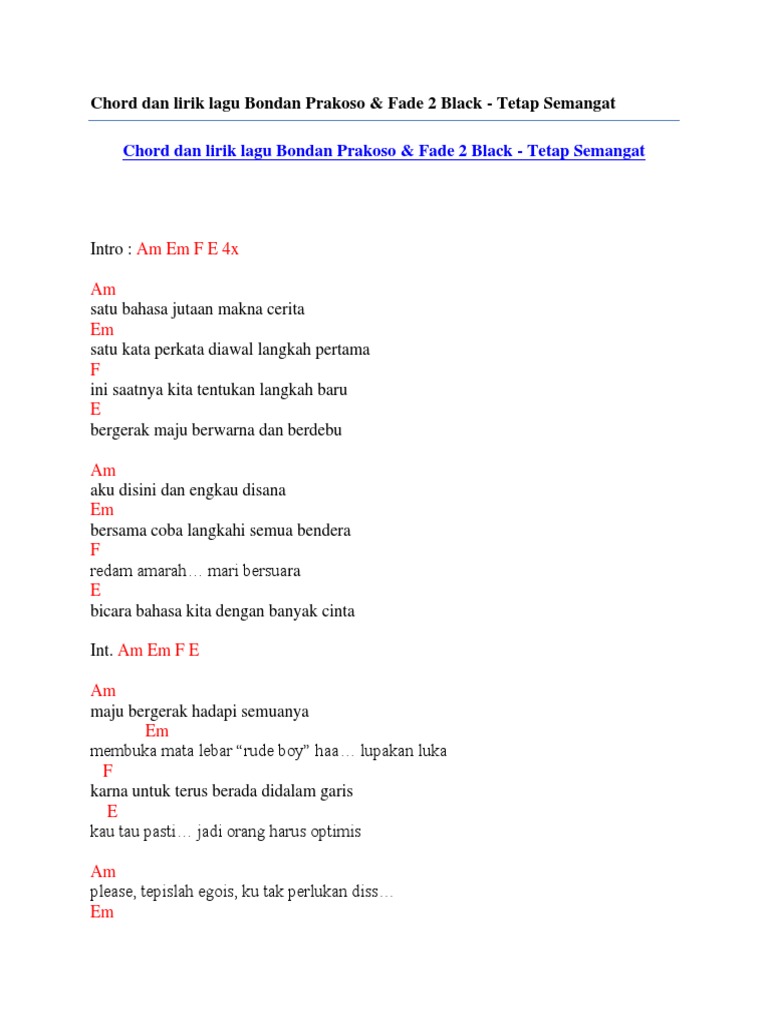 Chord Bondan Prakoso Fade 2 Black. Dia lahir ke dunia dari keluarga. Chord Bondan Prakoso Waktu Feat Fade 2 Black.
