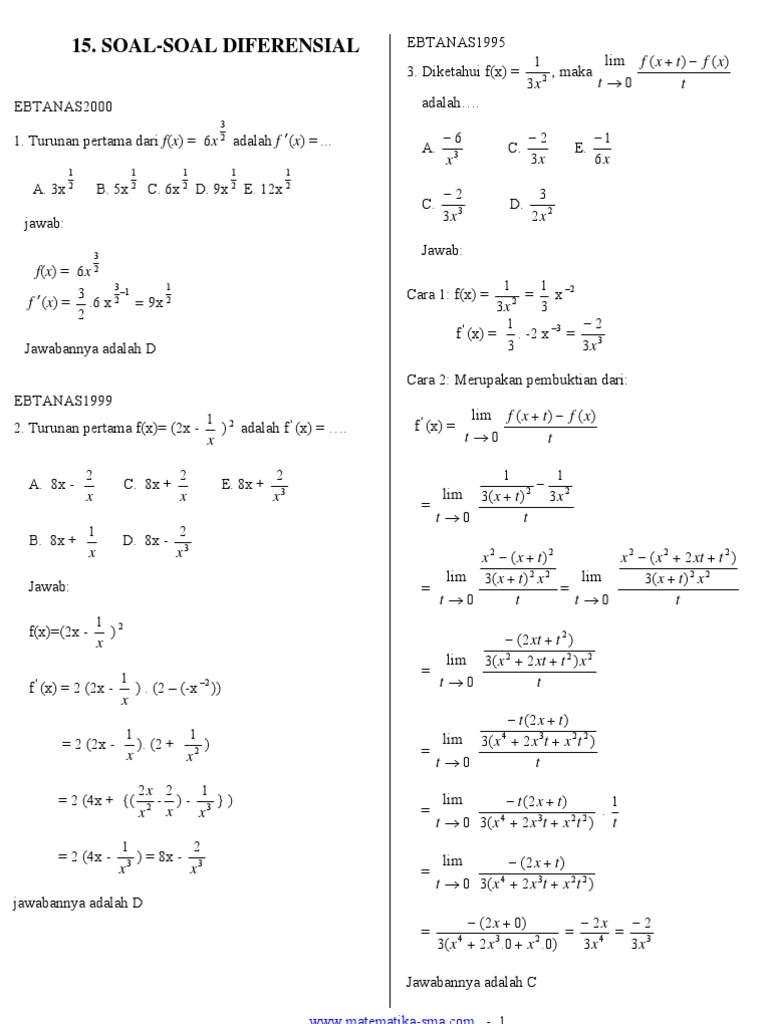 15 Soal Soal Diferensial Pembahasan